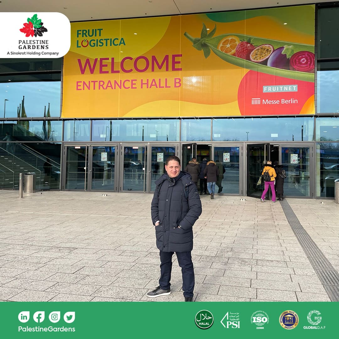 Berlin Expo Center, Germany – Pal Gardens Agricultural Company, one of Sinokrot Holding Companies, which specializes in high-quality Palestinian Medjool dates, completed its participation in the international exhibition (Fruit Logisitica 2023) which took place in Berlin / Germany from February 8 to February 10, 2023, along with the participation of many international foodstuff’s companies and brands.