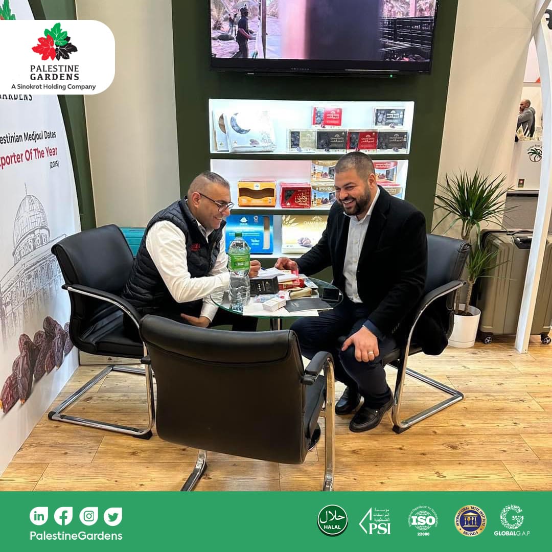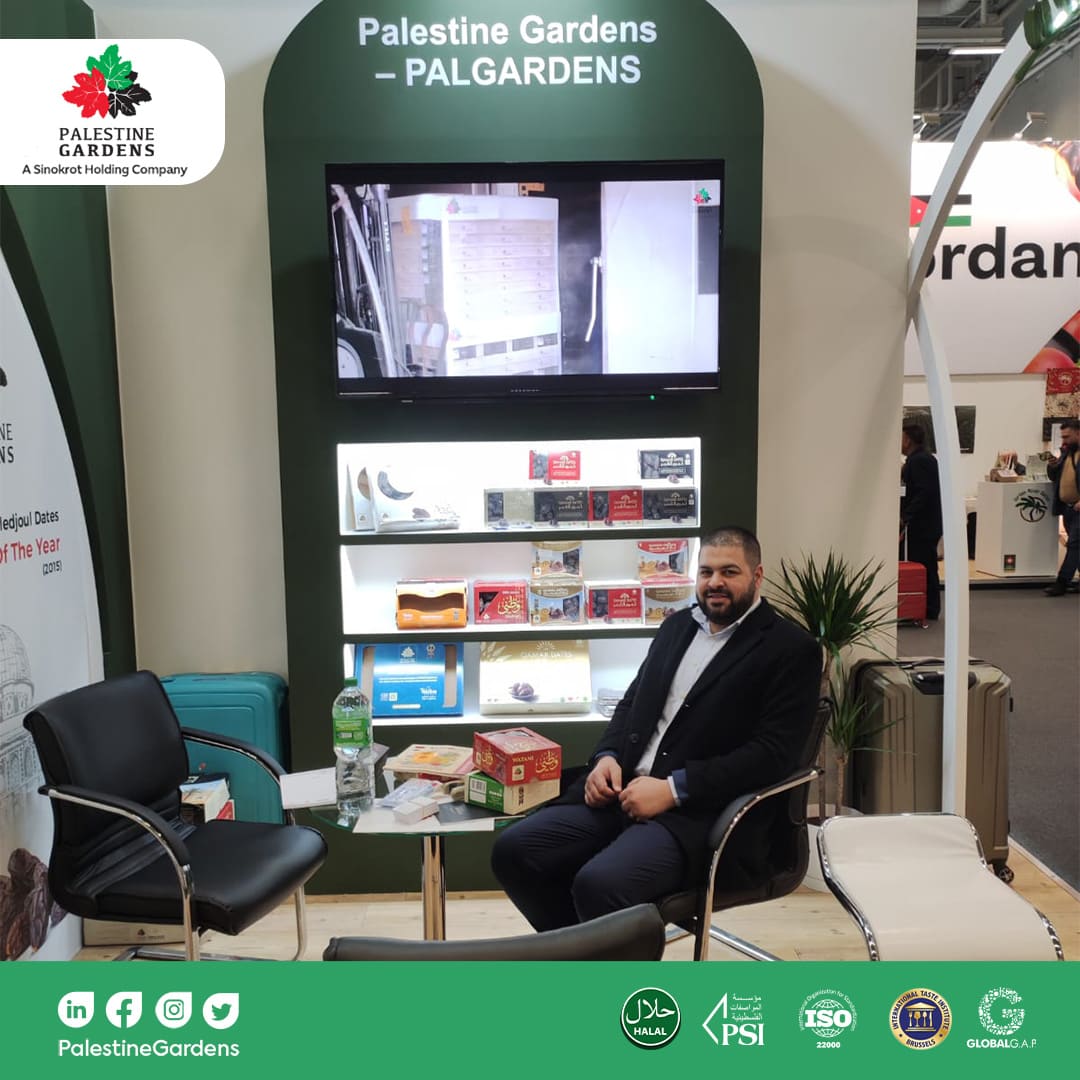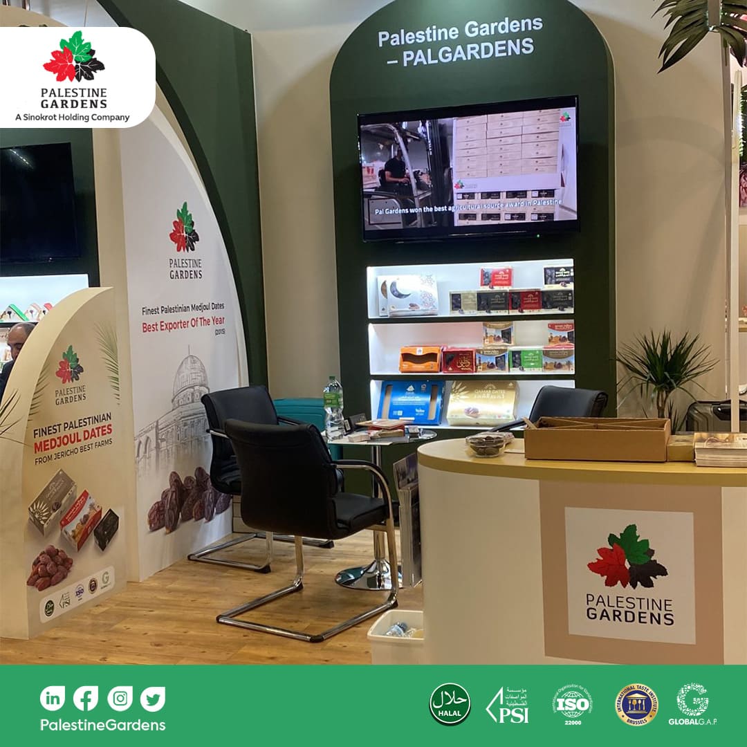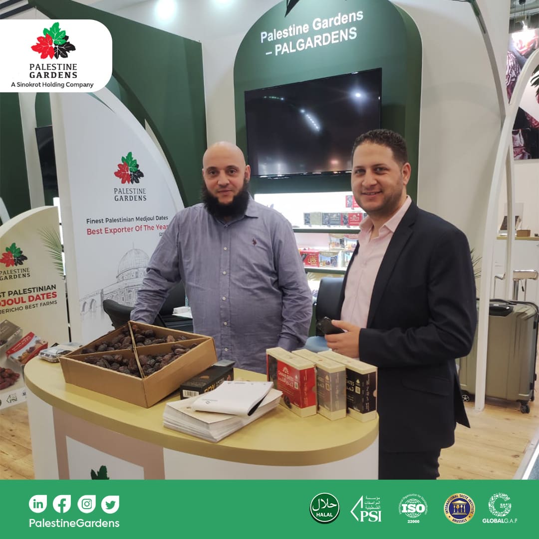 Pall Gardens presented the finest and most distinguished types of Medjool dates in its booth, which played a vital role in enhancing the presence of the Palestinian food industry in global exhibitions and reflecting the Palestinian identity to foreign nations. Eng. Mo’men Sinokrot, General Manager of Pal Gardens Agricultural Company, added: “Our participation in this exhibition is a step towards economic expansion and empowering the Palestinian product identity in the global markets, in addition to introducing the world to the products that Palestinian companies export, especially about the science and innovation that the Palestinian establishments have reached in the field of Medjool dates and other agricultural sectors, where the Palestinian Medjool dates are well received by the Palestinian and Arab communities around the world in addition to the Western society, which trusts the capabilities of Palestinian firms and the quality of their products. In addition to classifying Medjool dates as an integrated healthy meal by itself, thus nations of the world have recently used to classify it as one of the best meals for them.”